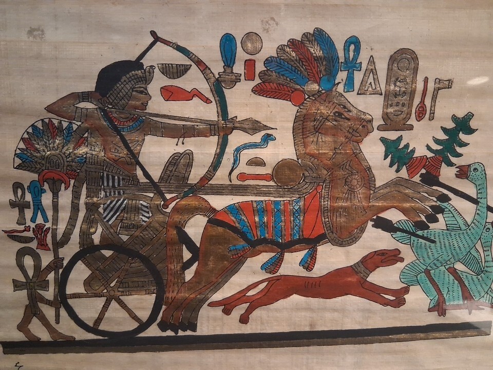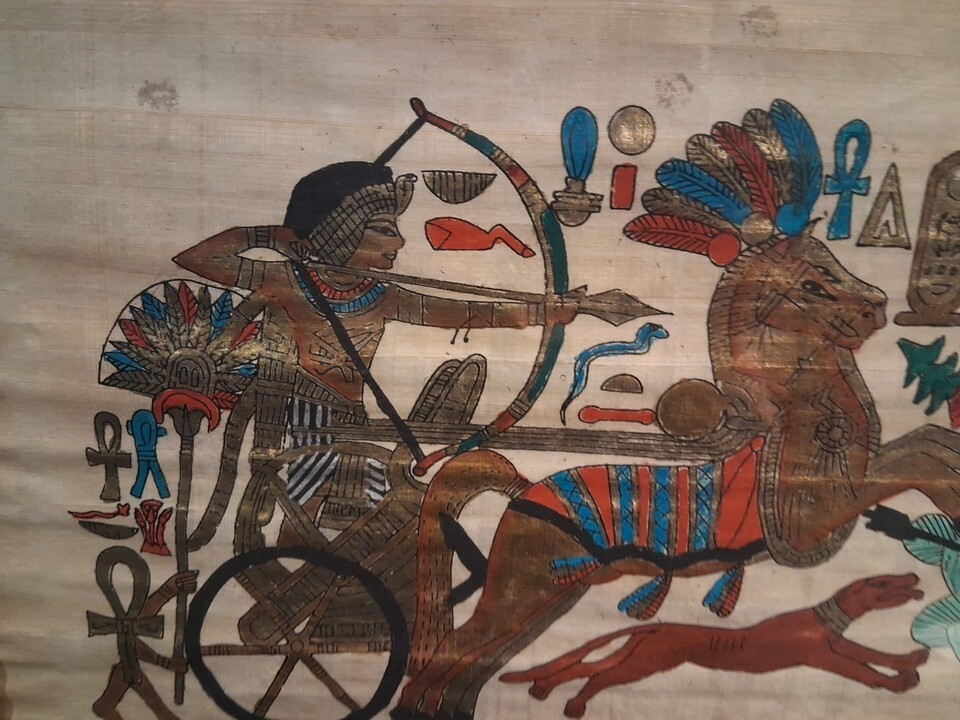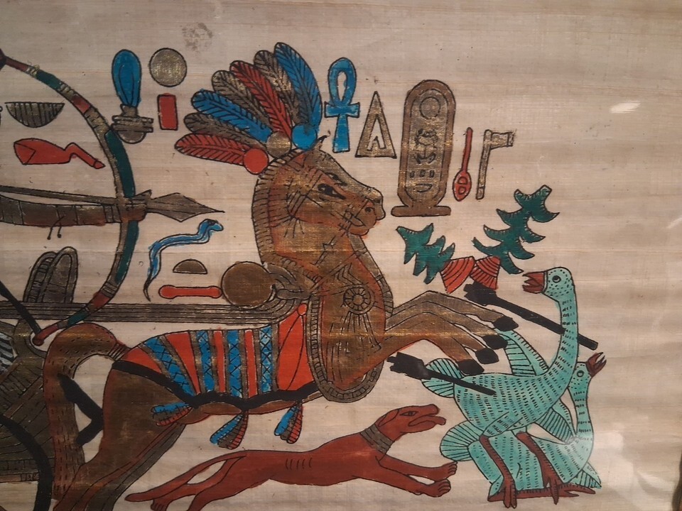 - Vintage Egyptian Art Painting PHARAOH Papyrus Paper Framed 19x15