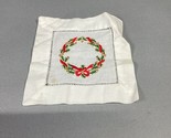 Vintage Embroidered Christmas Wreath Pocket Square Handkerchief- 5.75x5.5”