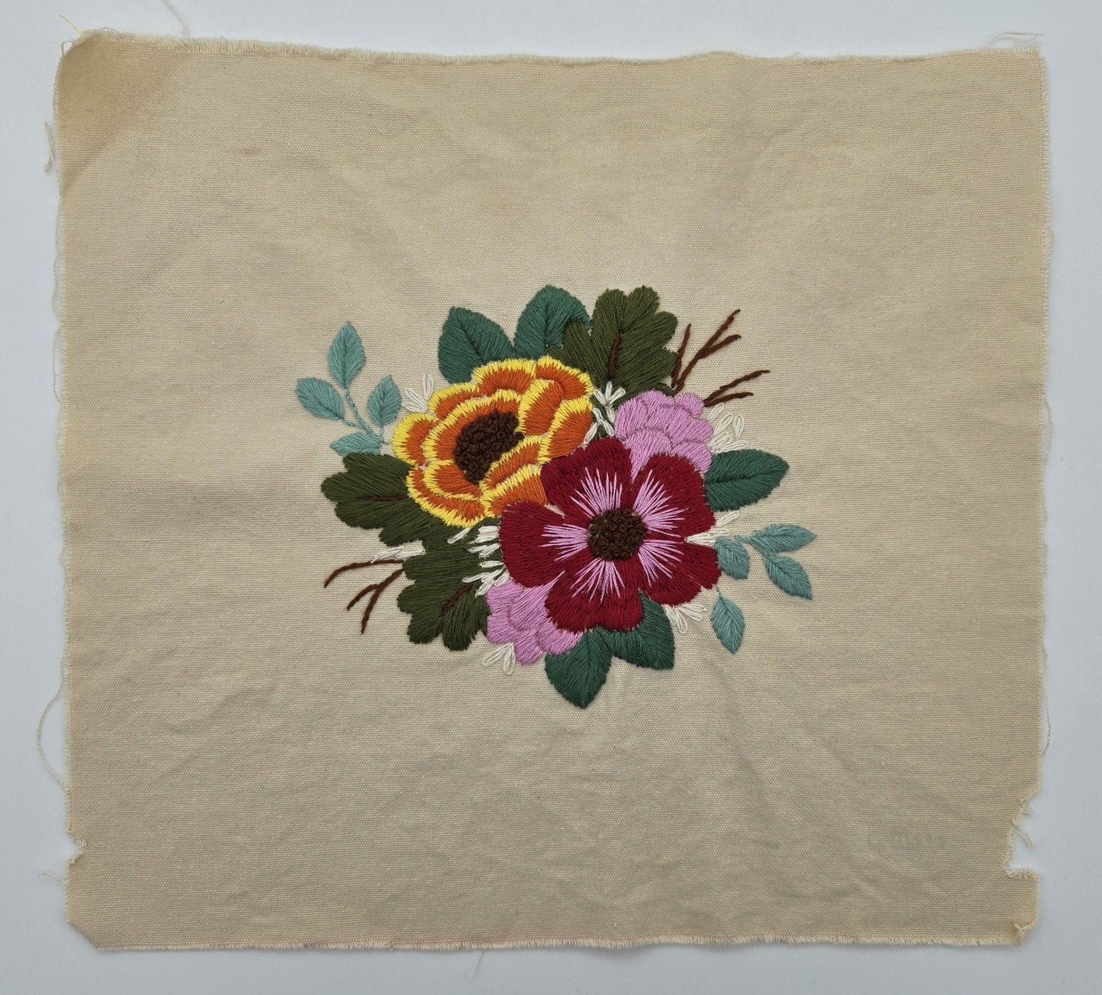 - Vintage Embroidered Flowers 10.5x11 Handmade Fabric Textile Art