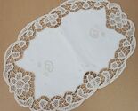 - Vintage Embroidery Table Runner Dresser Doily Beige 16x11 Inch Oval
