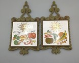 - Vintage Enesco Ceramic Tile Trivet Cast Iron Green With Sun Fruit And Veggies