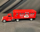 This vintage Ertl Budweiser World Famous Clydesdales Horse Bank from 1941 is a must-have for any collector of diecast and toy vehicles. The iconic red tractor trailer/semi design, featuring the beloved Budweiser logo and Clydesdales horses, is sure to impress. The 1:43 scale model is made with high-quality materials and is in excellent shape, ready to be displayed and admired. Perfect for lovers of vintage vehicles and Budweiser memorabilia alike, this model is a true gem.