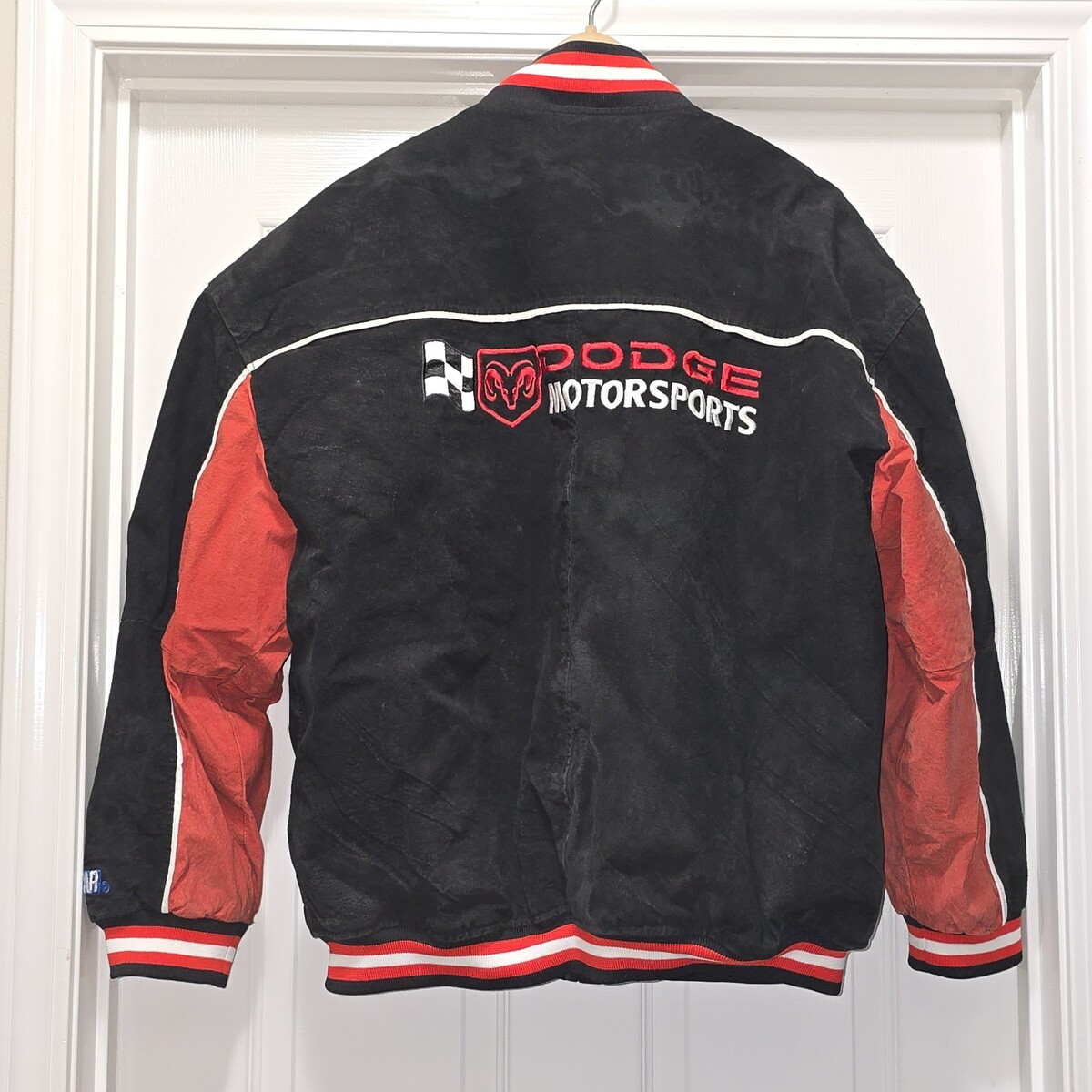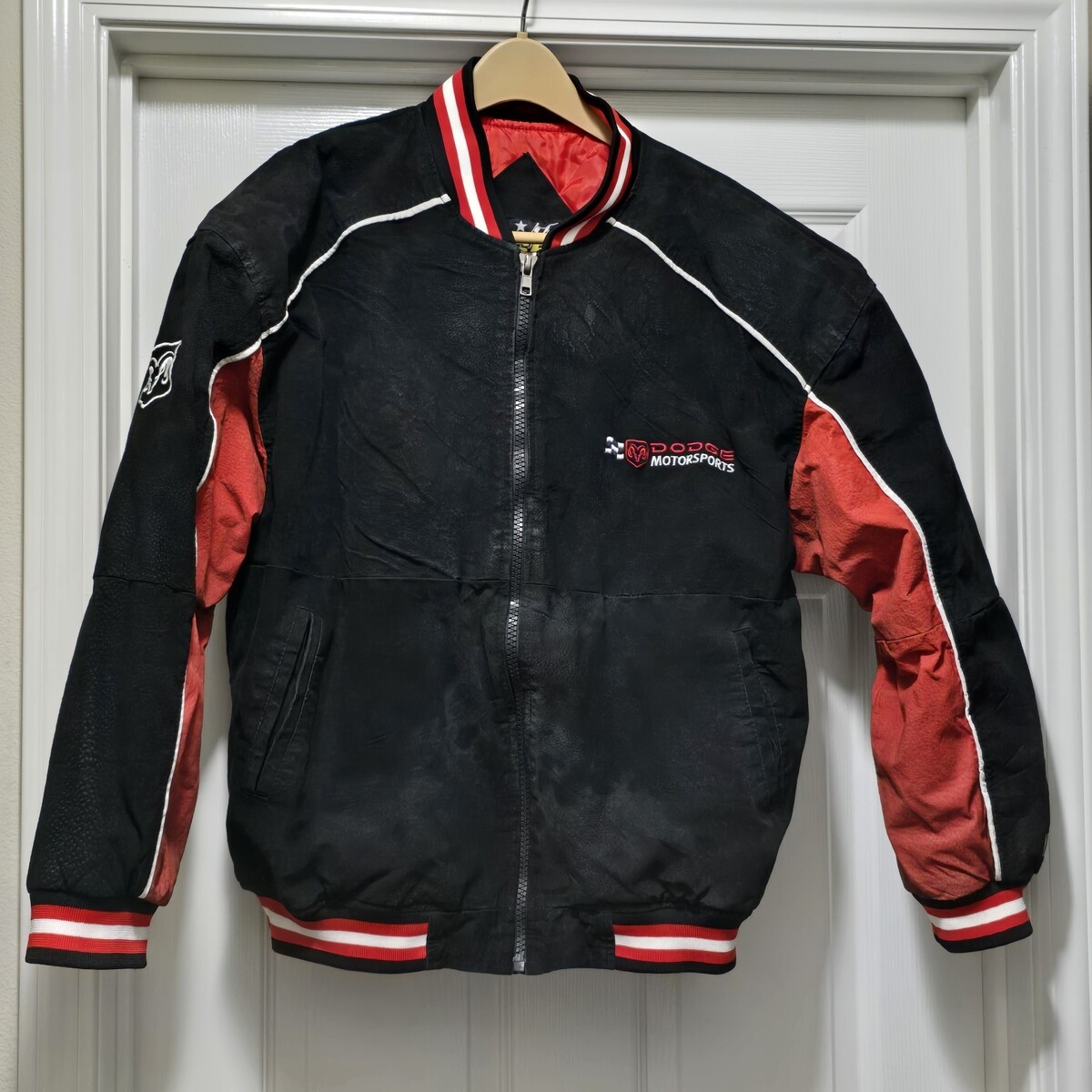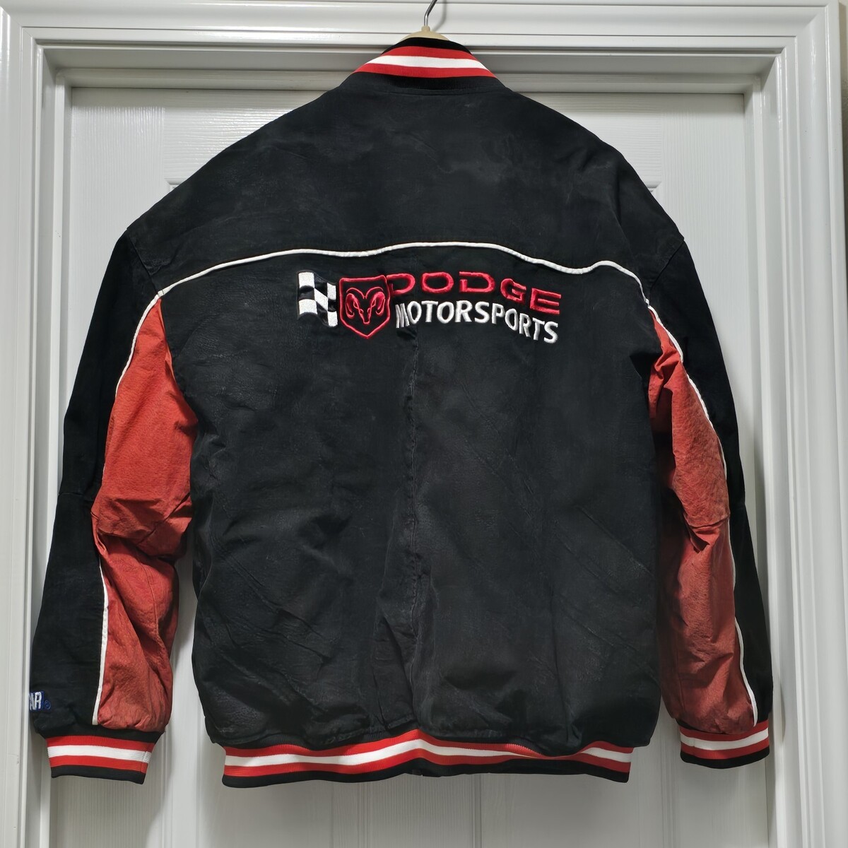- Vintage Essex Nascar Dodge Motorsports Leather Bomber Jacket Men's L
