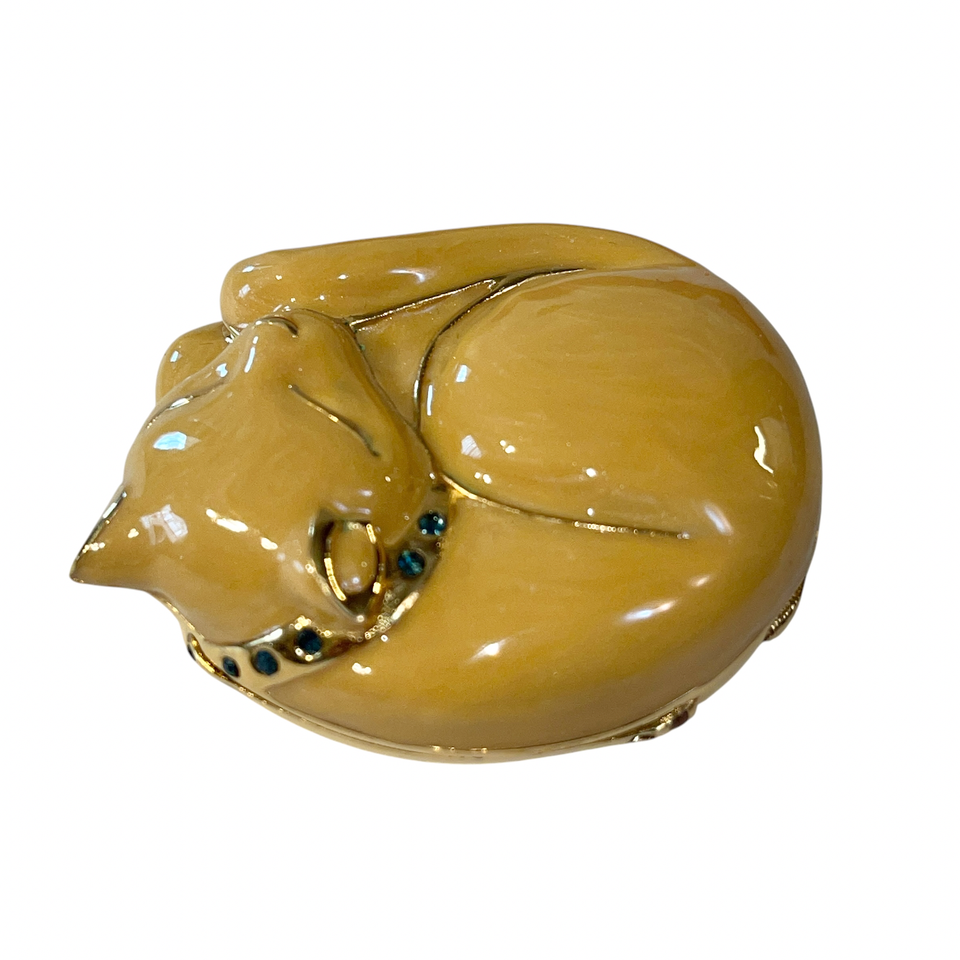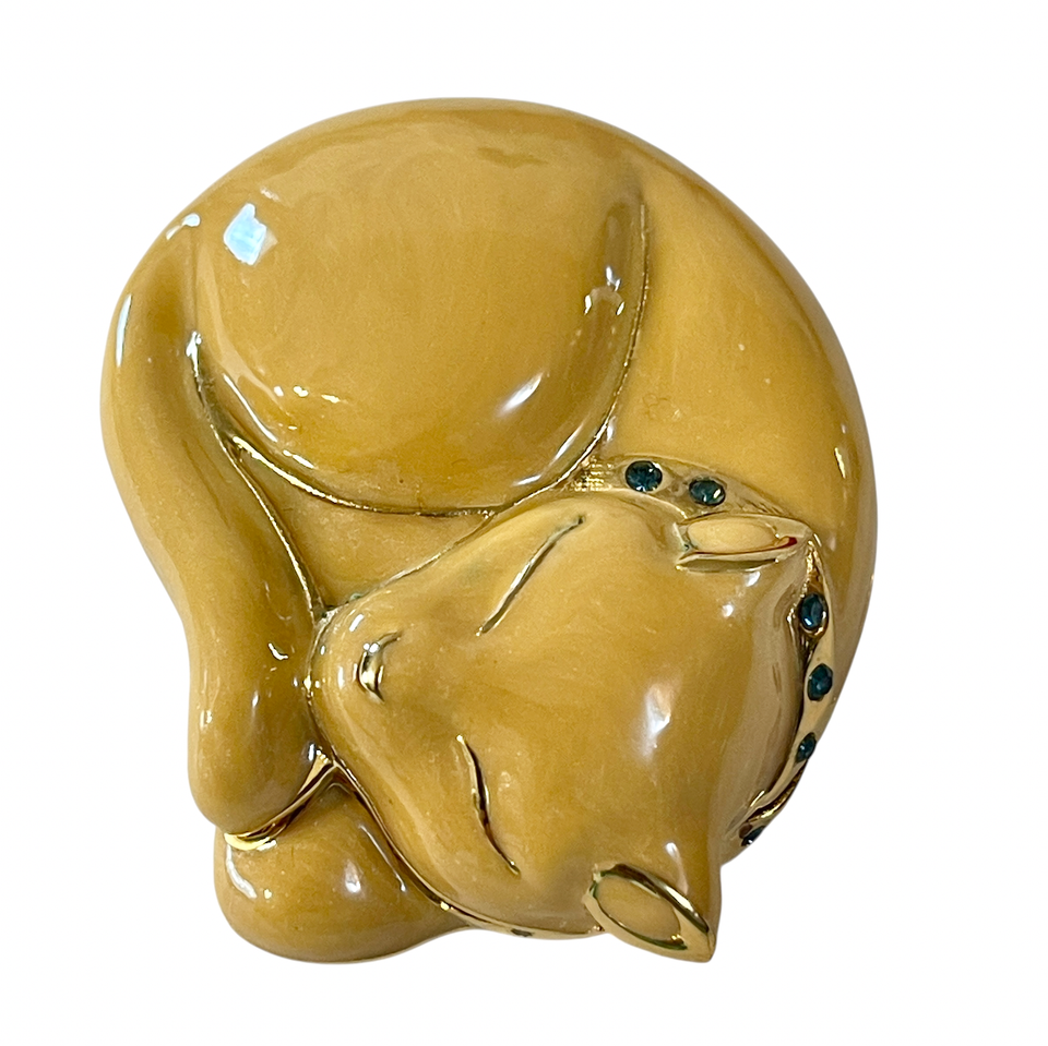 The product is a vintage Estee Lauder solid perfume in a collectible compact featuring a kitten design with green crystals on the collar. The scent is from the White Linen fragrance line. This compact is a unique and sought-after piece for collectors of vanity items or Estee Lauder products. This exclusive formula contains: White Linen Perfume, beeswax, ozocerite. Note to buyers: This compact is sold as a collectible piece. Its age and history may make it better suited for display rather than use! Set includes original box, box is slightly damaged. Please see all gallery photos. We are a smoke free, pet friendly home. Have a great day!