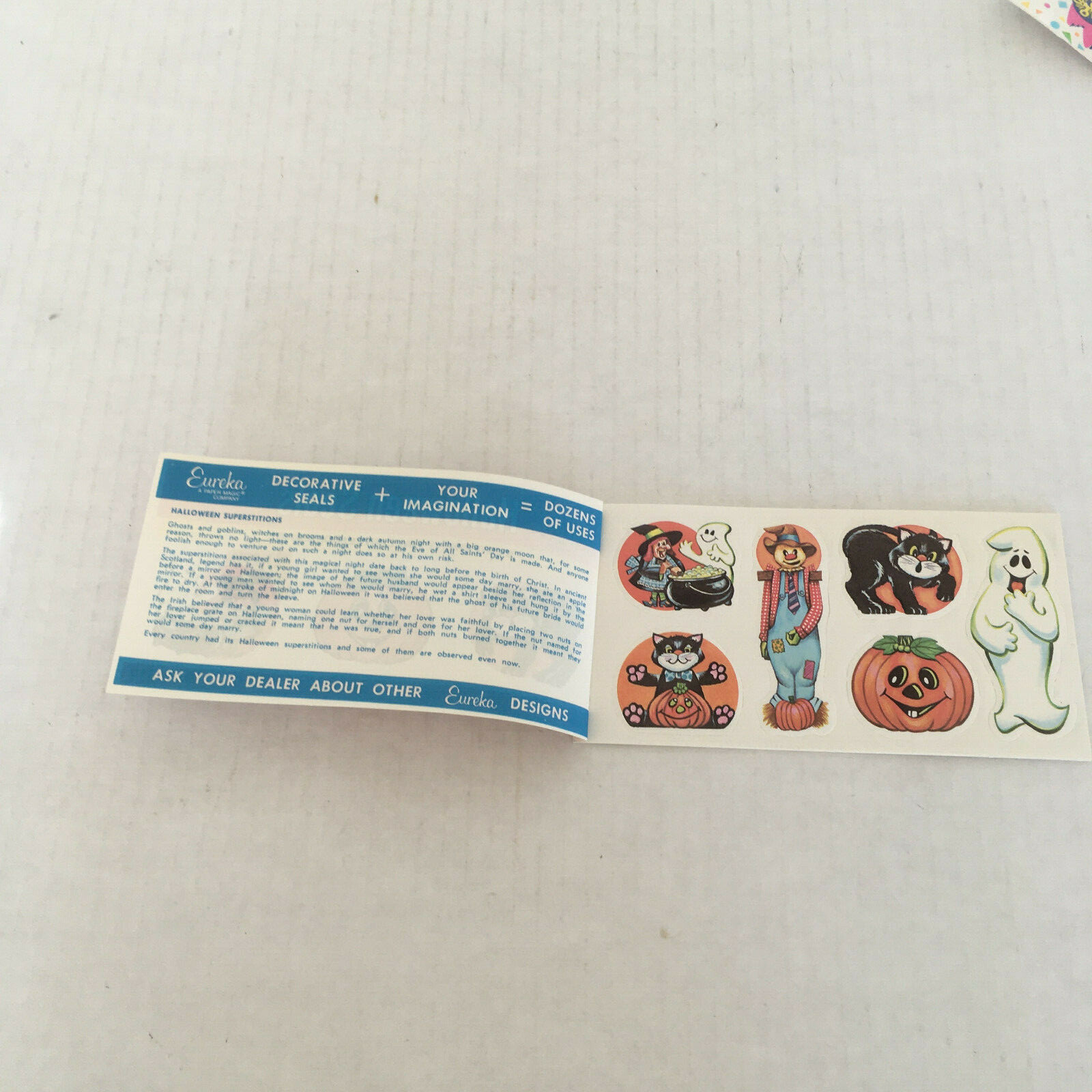 - Vintage Eureka Halloween seals book 6 different designs cat ghost witch pumpkin