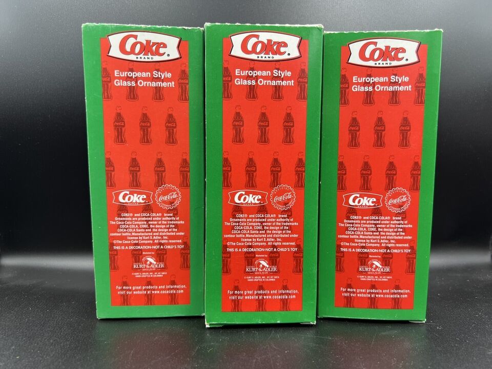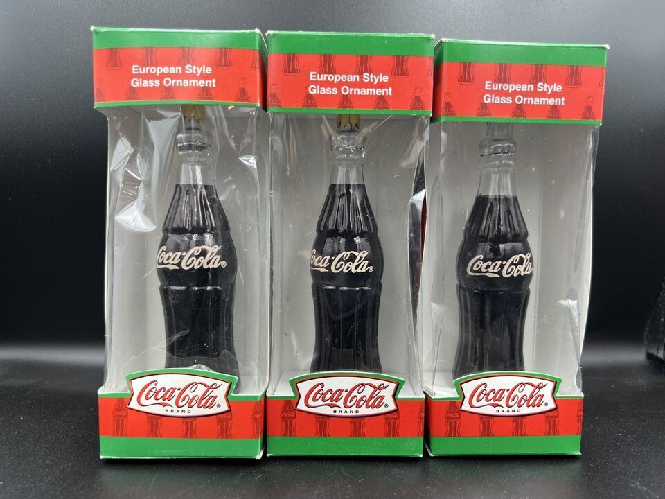 Vintage European Style Coca Cola Bottle Glass Christmas Ornament - lot of 3