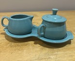 - Vintage FIESTA WARE Turquoise Sugar & Creamer Set - Coffee/Tea - Complete w/Tray