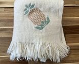 Vintage Faribo Wool Blend Cream Fringe Throw Blanket With Pineapple Accent 44x51