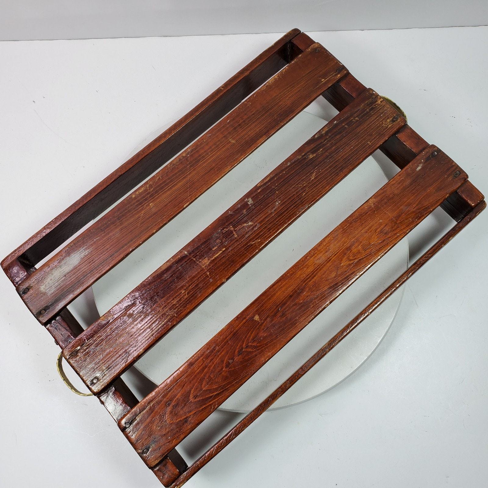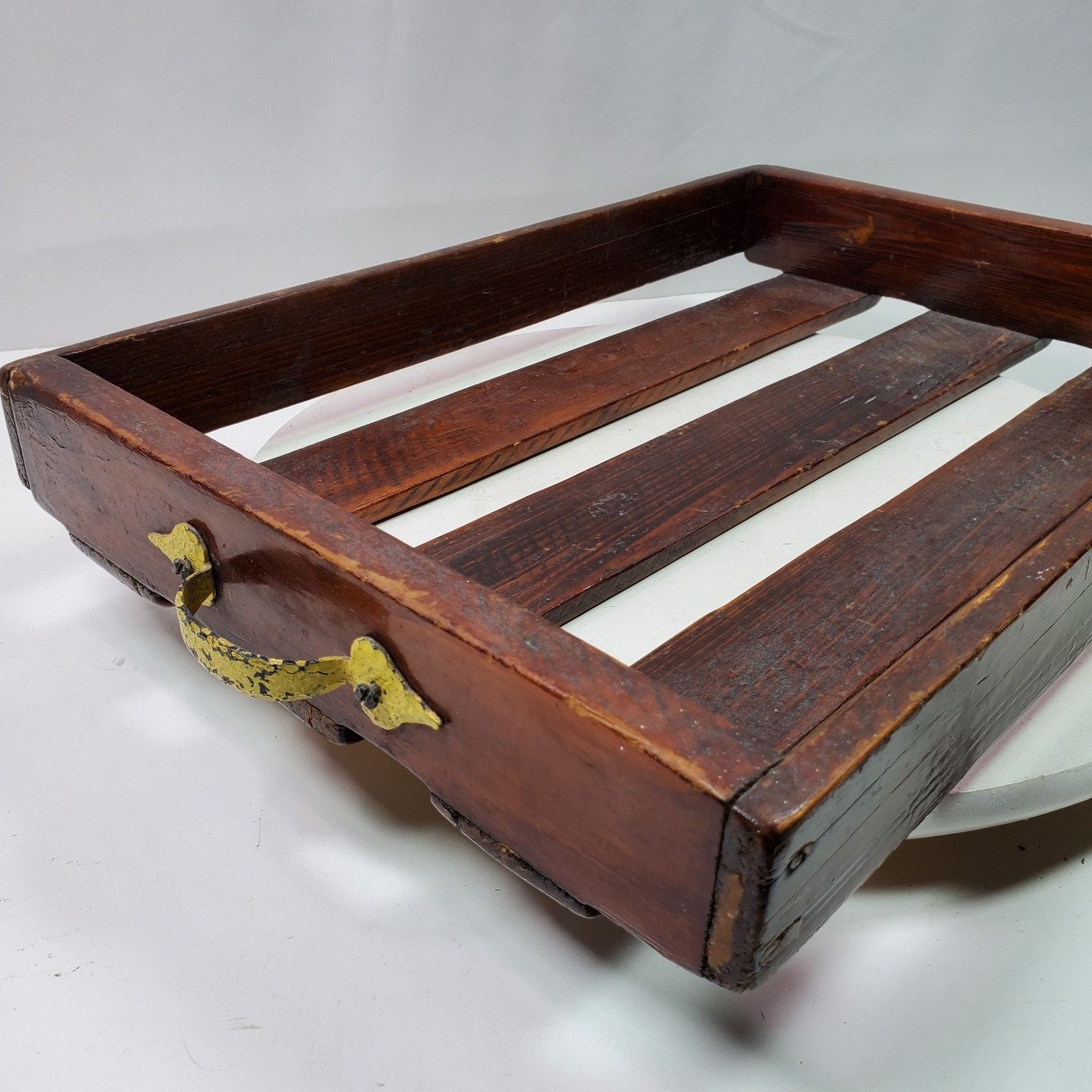 - Vintage Farmhouse Serving Tray 18x12x2.5 Inch Wood Slats w/ Metal Handles