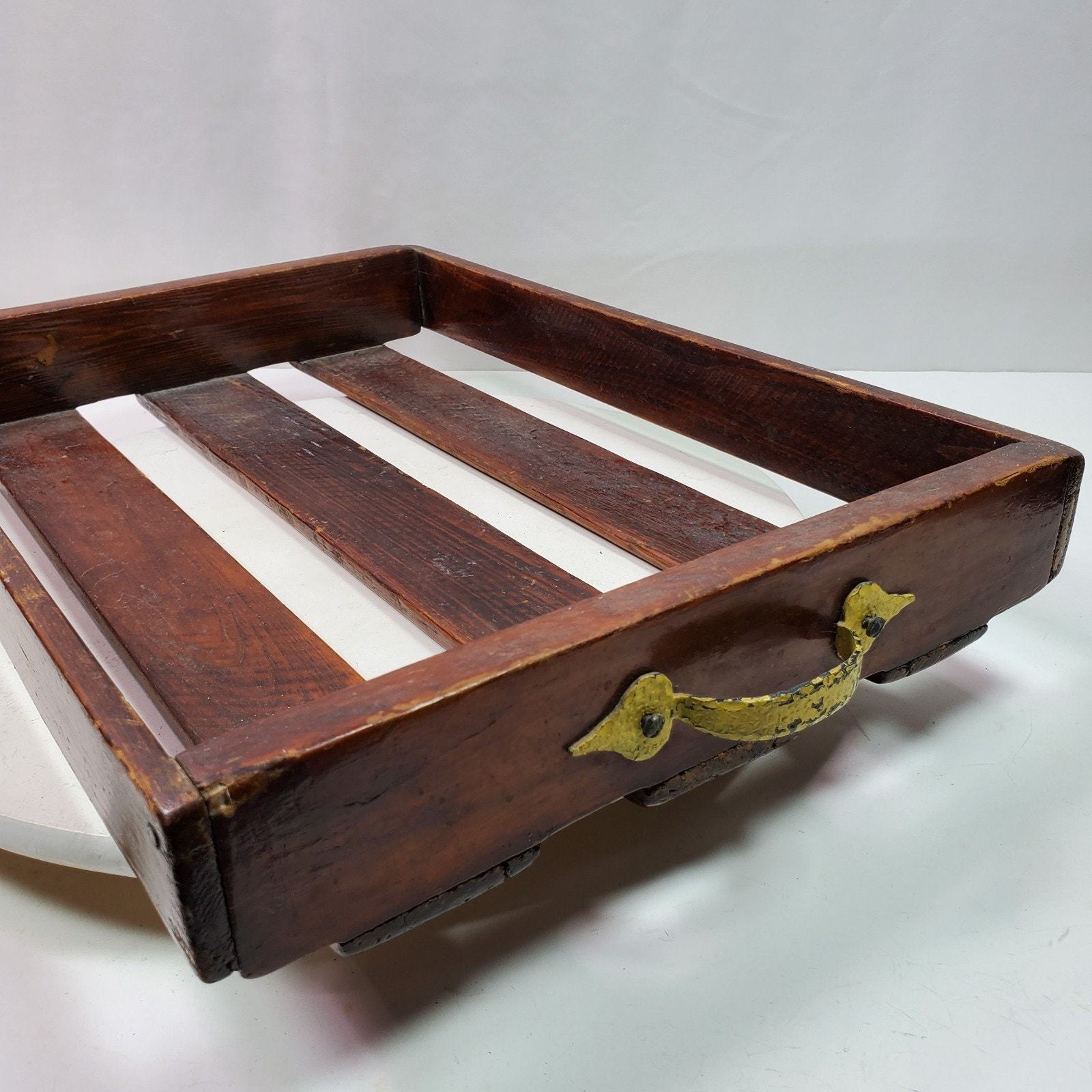 Vintage Farmhouse Serving Tray 18x12x2.5 Inch Wood Slats w/ Metal Handles