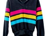 Vintage, 80s, Favorites, Taiwan, R.O.C., Retro, Fleece Pullover, Shawl Collar, Striped, Bright Colors, Cozy, Casual, Womens Medium, Used, Soft Warm, Fall, Winter