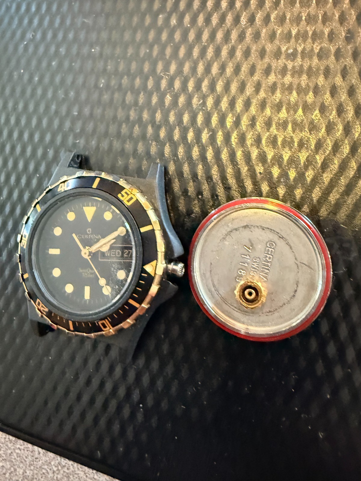 - Vintage Femmes Certina 1980's Plongeur ? Watch W / Jour Date Fenêtre Noir Or