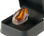 Vintage Femmes Grand Ovale Ambre Bague en Argent Taille 5.75