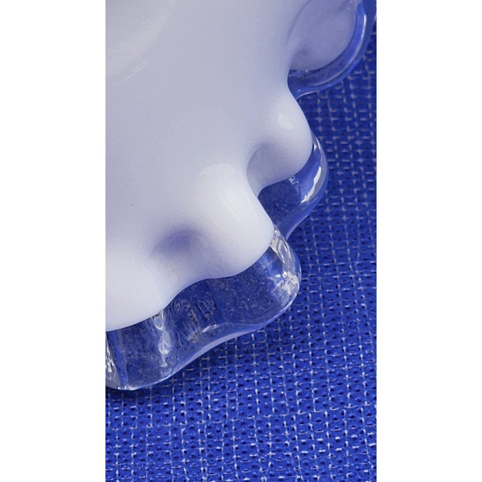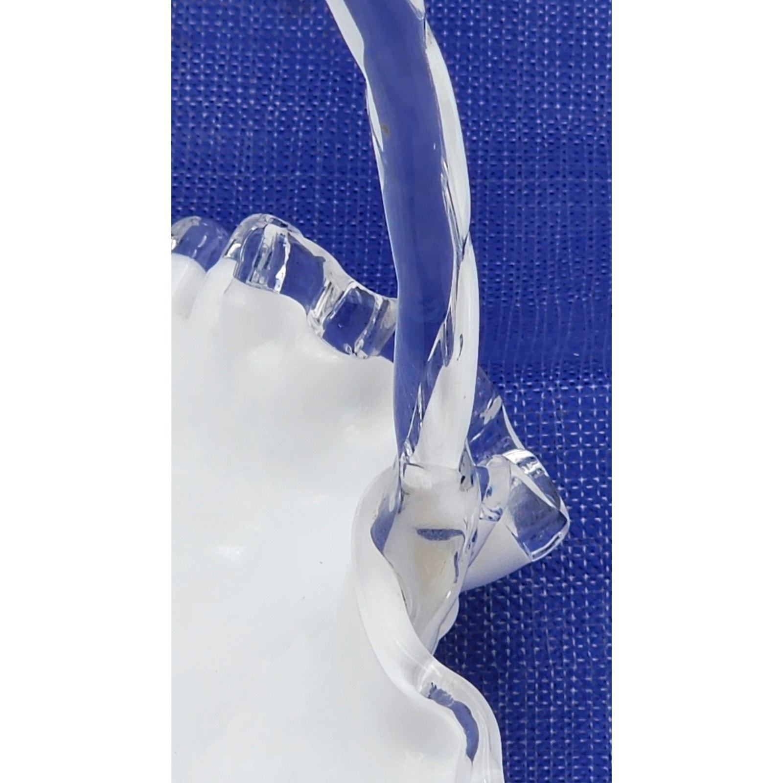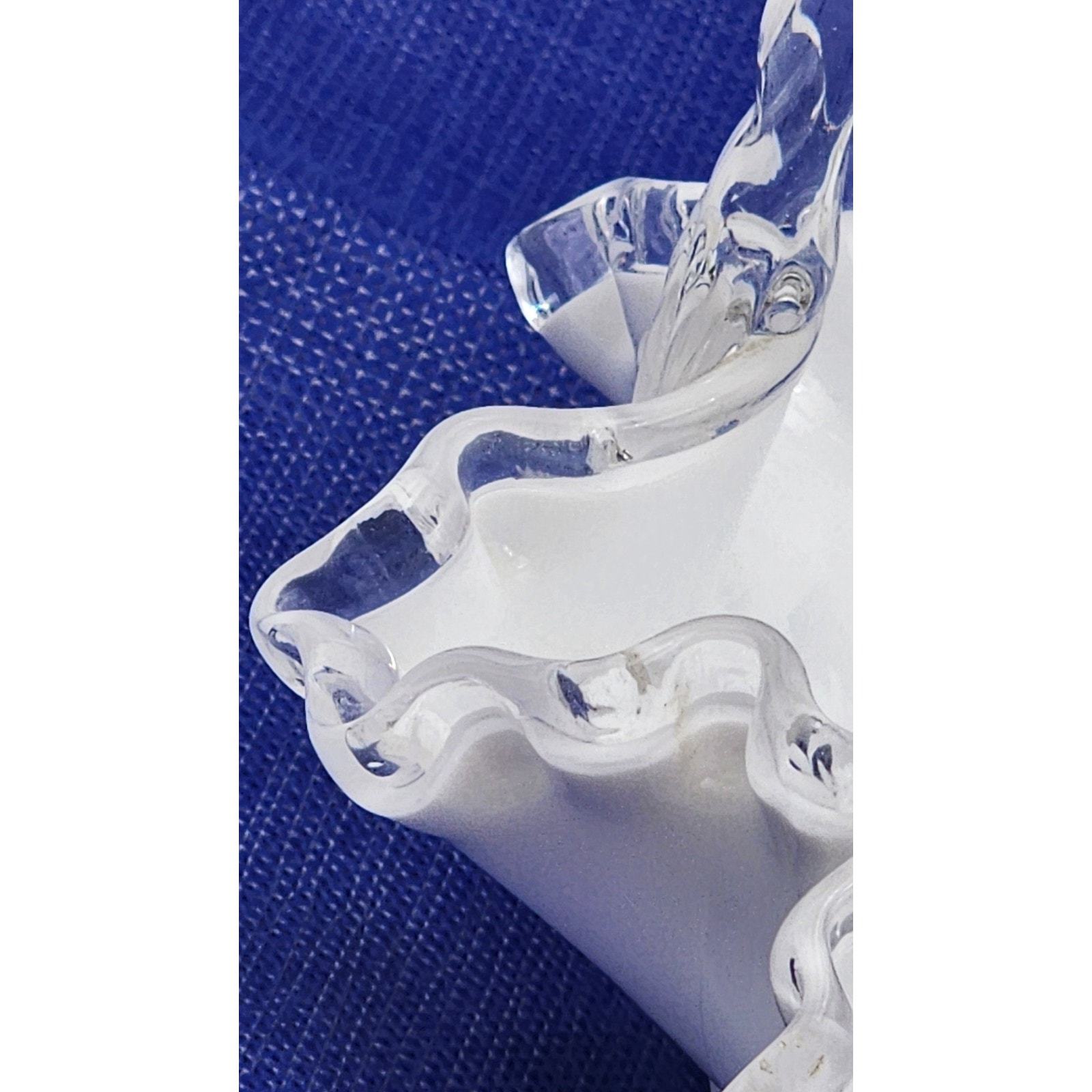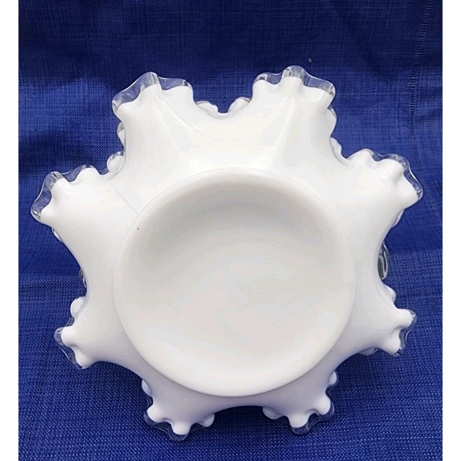 - Vintage Fenton Crystal Crest White Milk Glass 7.5" Basket Ruffled Clear Handle