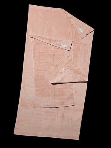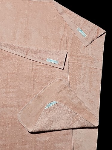 - Vintage Fieldcrest 3 pc Towel Set Rose Pink Plush Cotton Made in the USA