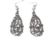 Vintage Filigree Silver Tone Faceted Teardrop Open Faced Dangle Drop Earrings