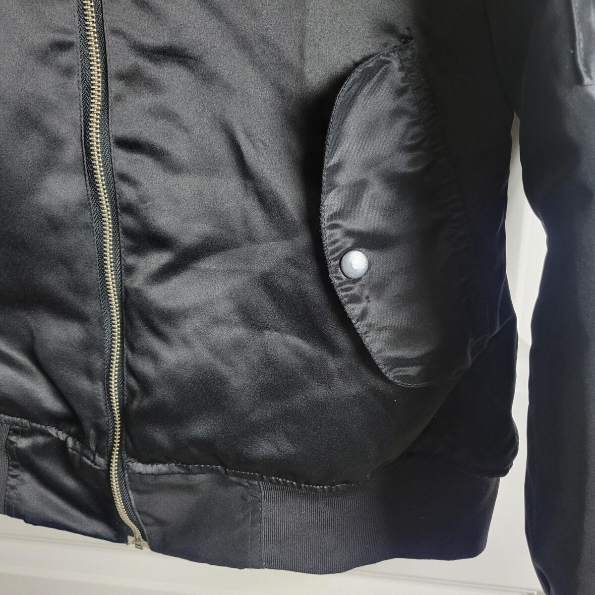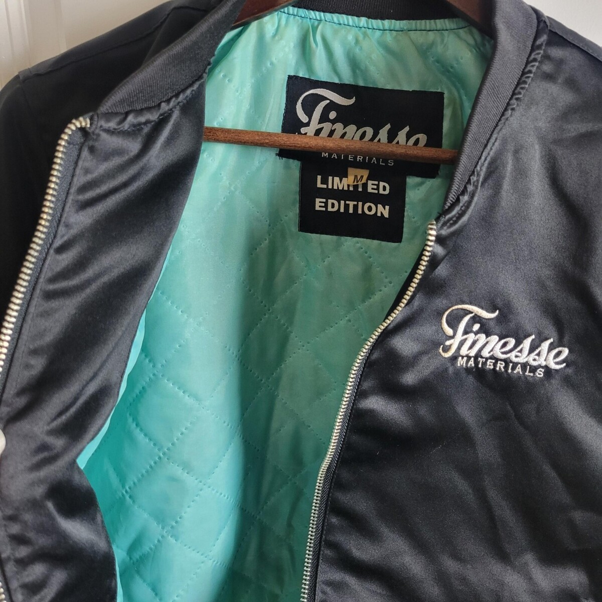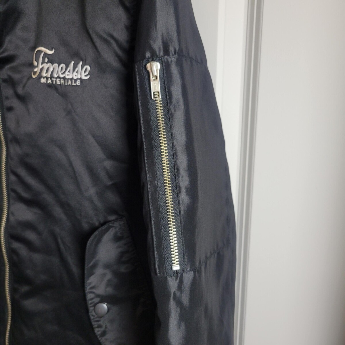 - Vintage Finesse Materials Size M Limited Edition Satin Black Bomber Jacket Y2K