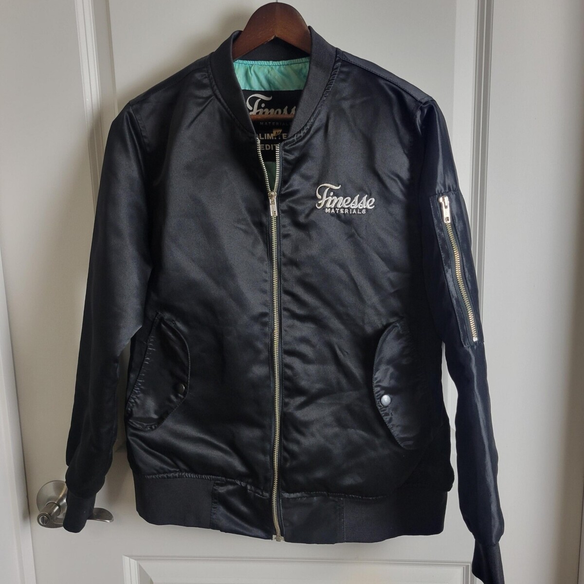 Vintage Finesse Materials Size M Limited Edition Satin Black Bomber Jacket Y2K