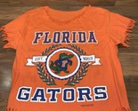 The product is a vintage Florida Gators T-shirt featuring the team logo and branding. This officially licensed shirt is in white color and was manufactured in the United States. It is a men's medium size with a single stitch construction, giving it a nostalgic and authentic feel. Perfect for any football fan looking to show support for the Florida Gators in style.