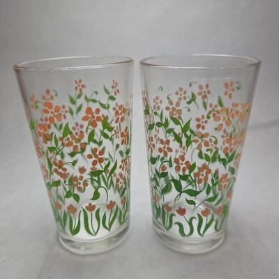- Vintage Flower Glasses Pink Tulips Tumbler 5" Tall