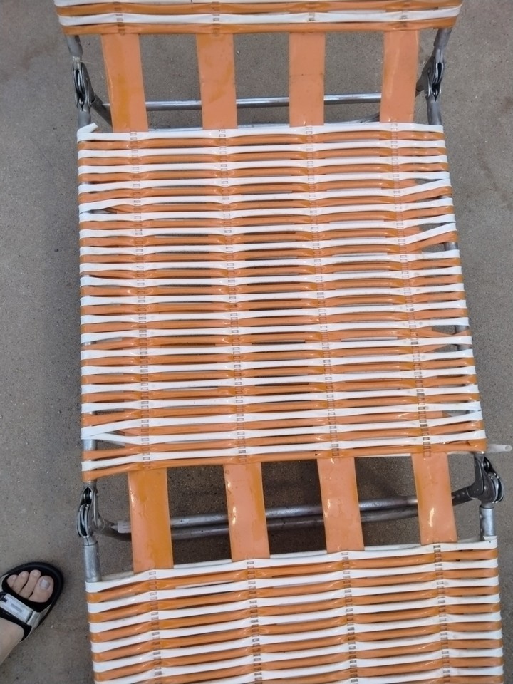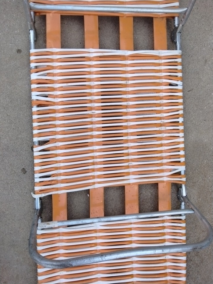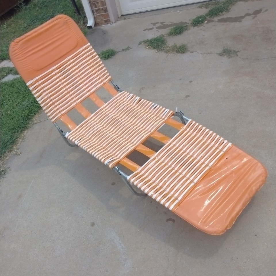 - Vintage Folding Jelly Tube Chaise Lounge Lawn Chair Vinyl Retro Orange White