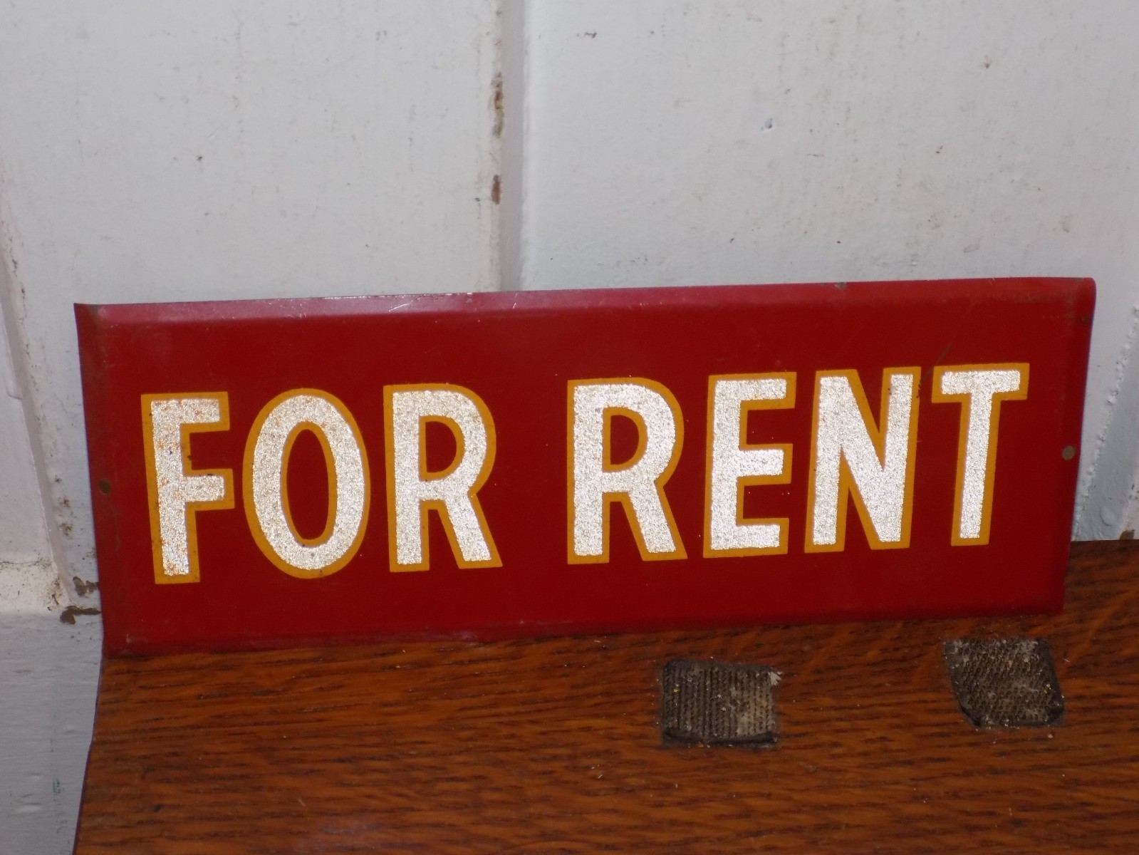 You are buying a Vintage For Rent Tin Schmaltz Sign.