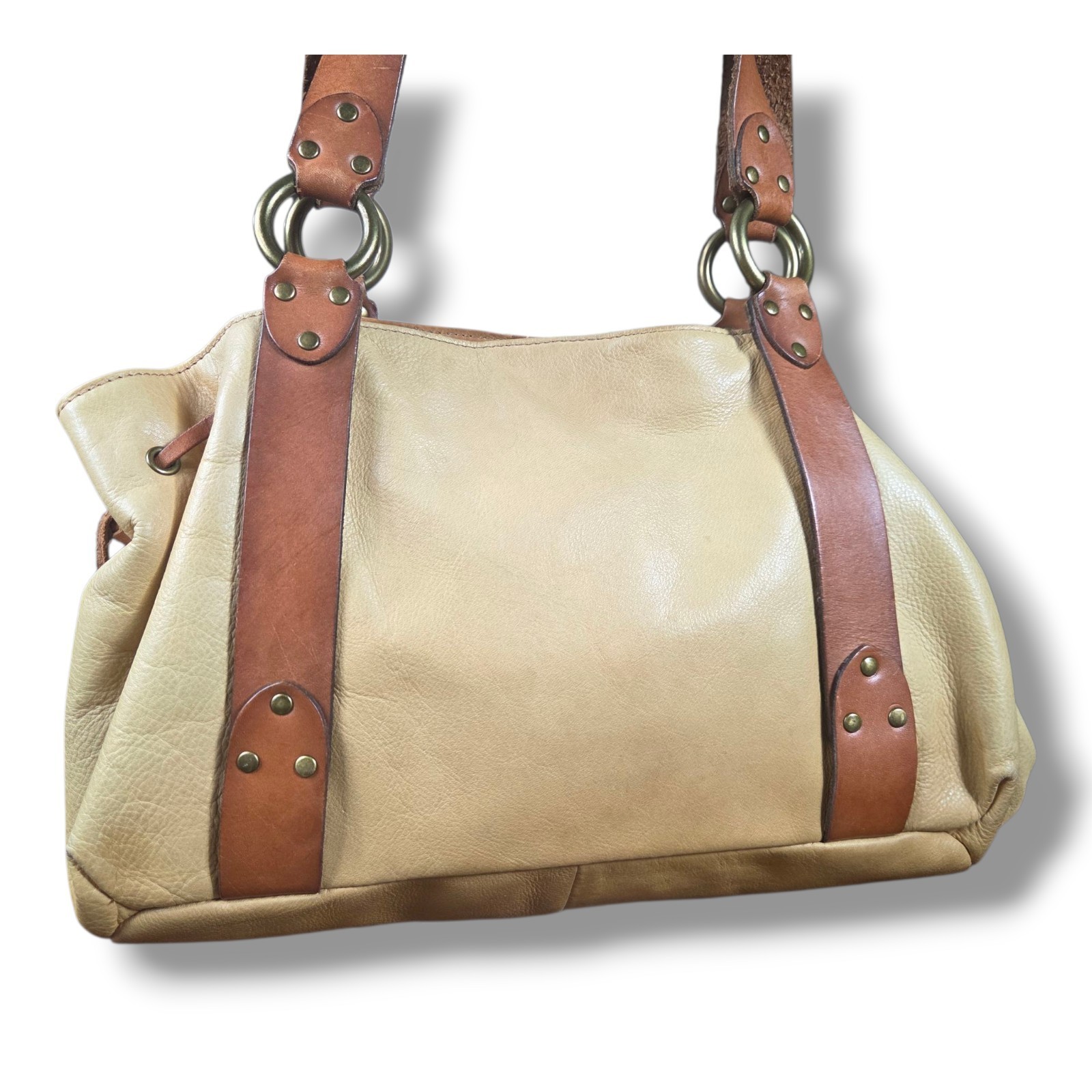 - Vintage FOSSIL 1954 Yellow LEATHER SHOULDER BAG PURSE 75082 Hand Tote Hobo Y2K