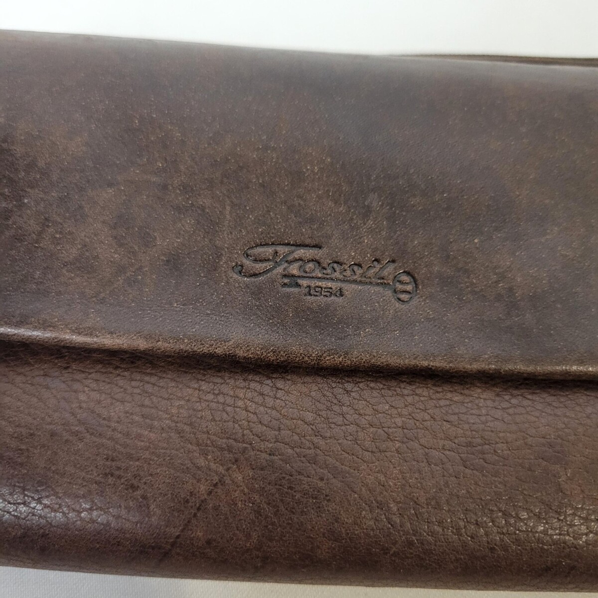 - Vintage Fossil Classic Soft Brown Lamb Distressed Leather Clutch Wallet Purse