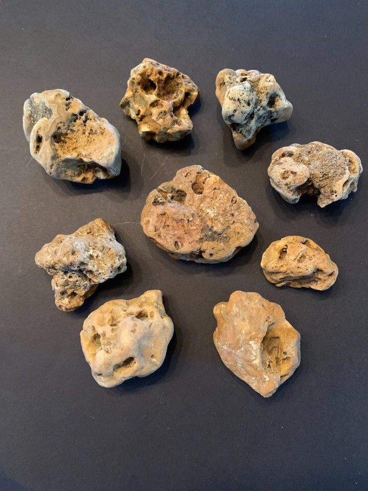 “Vintage fossil stones from lava field, cleaned and sanitized” |