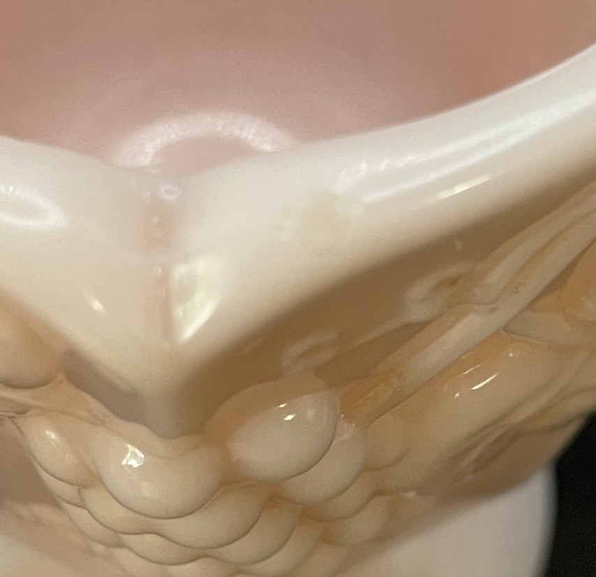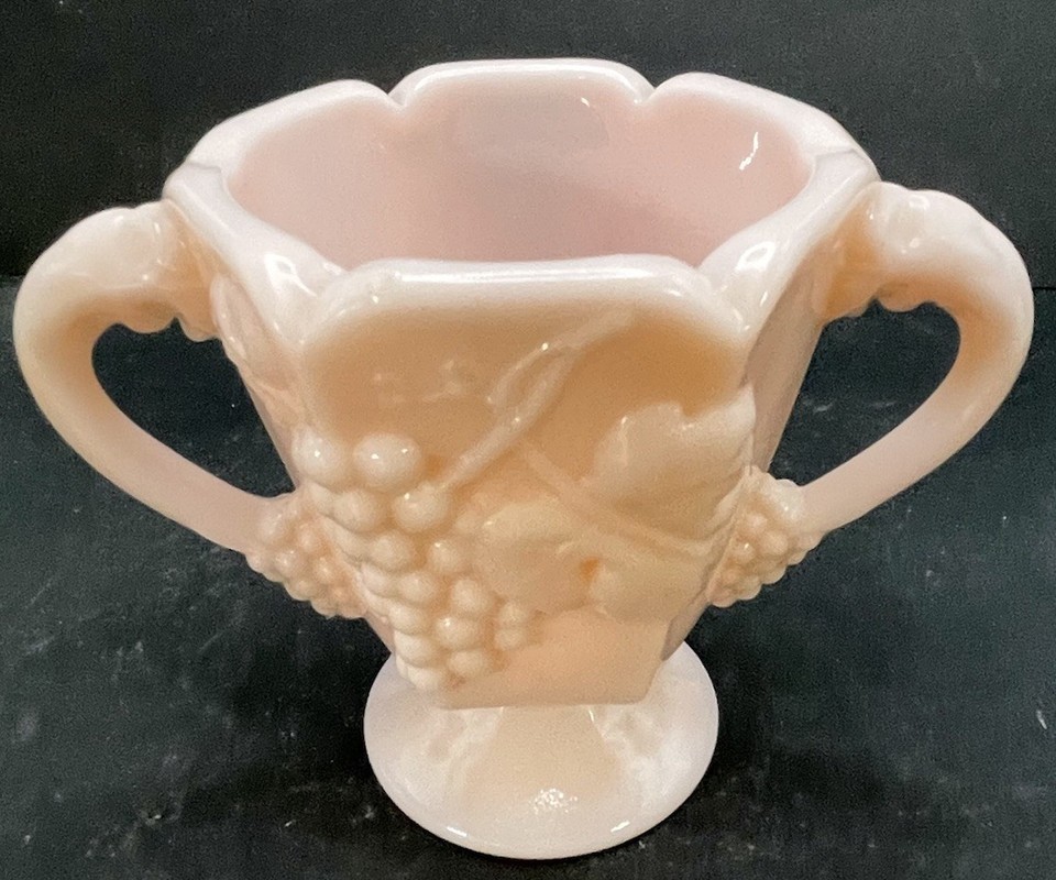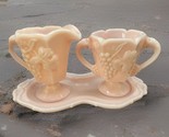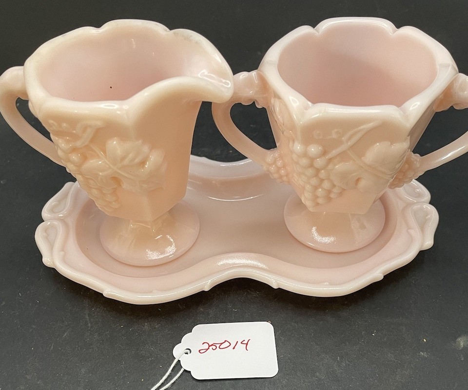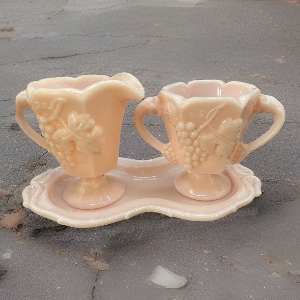 - Vintage Fostoria Pink Milk Glass Creamer & Sugar Tray Grape Leaf 1950's RARE