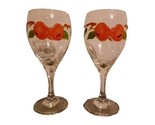Vintage Franciscan Apple Goblets – Painted Glass Stemware Set of 2 – 7.25