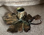 Vintage French Brass Candle Holder in Leaf Shape with Beautiful Natural Patina