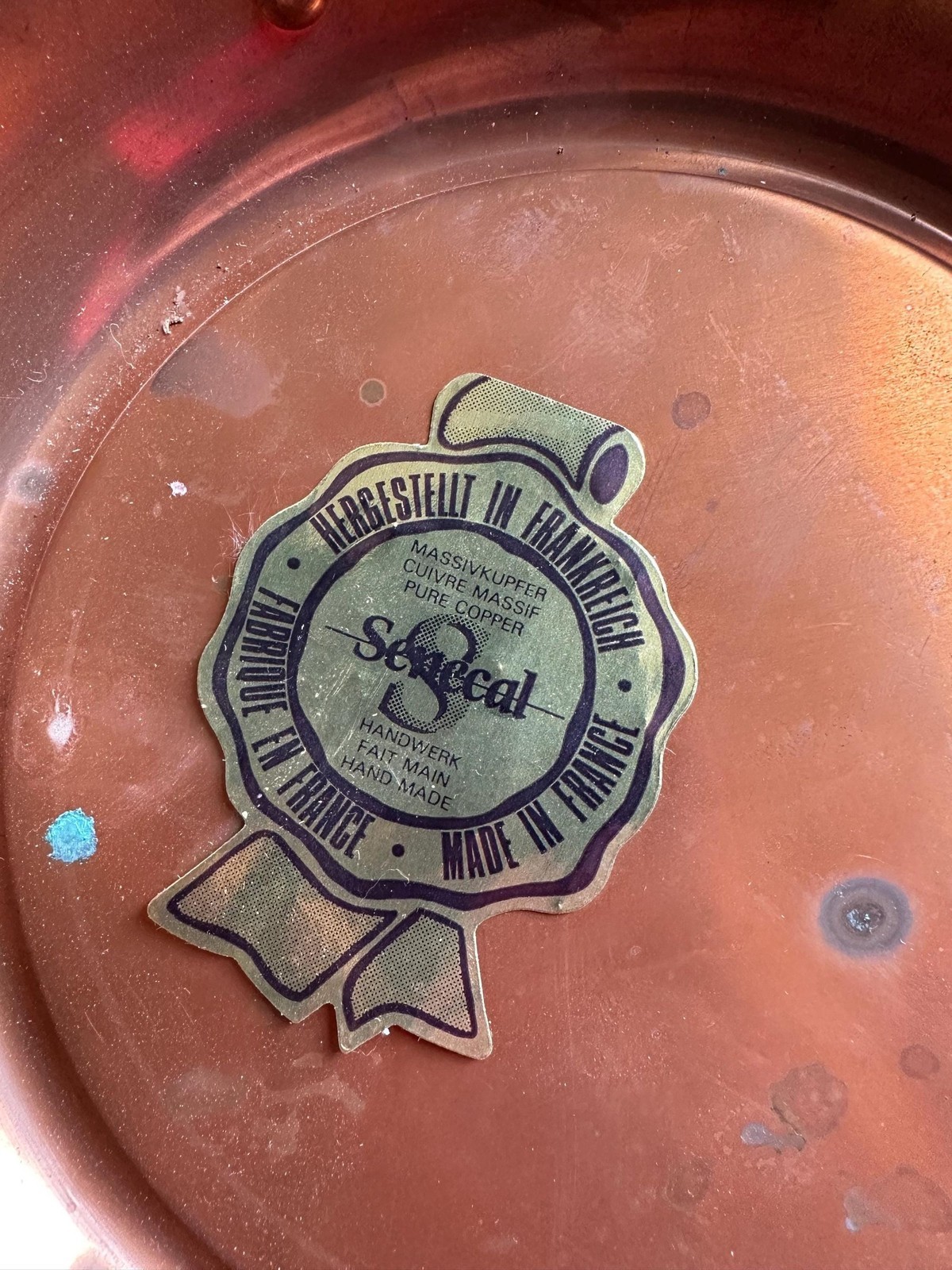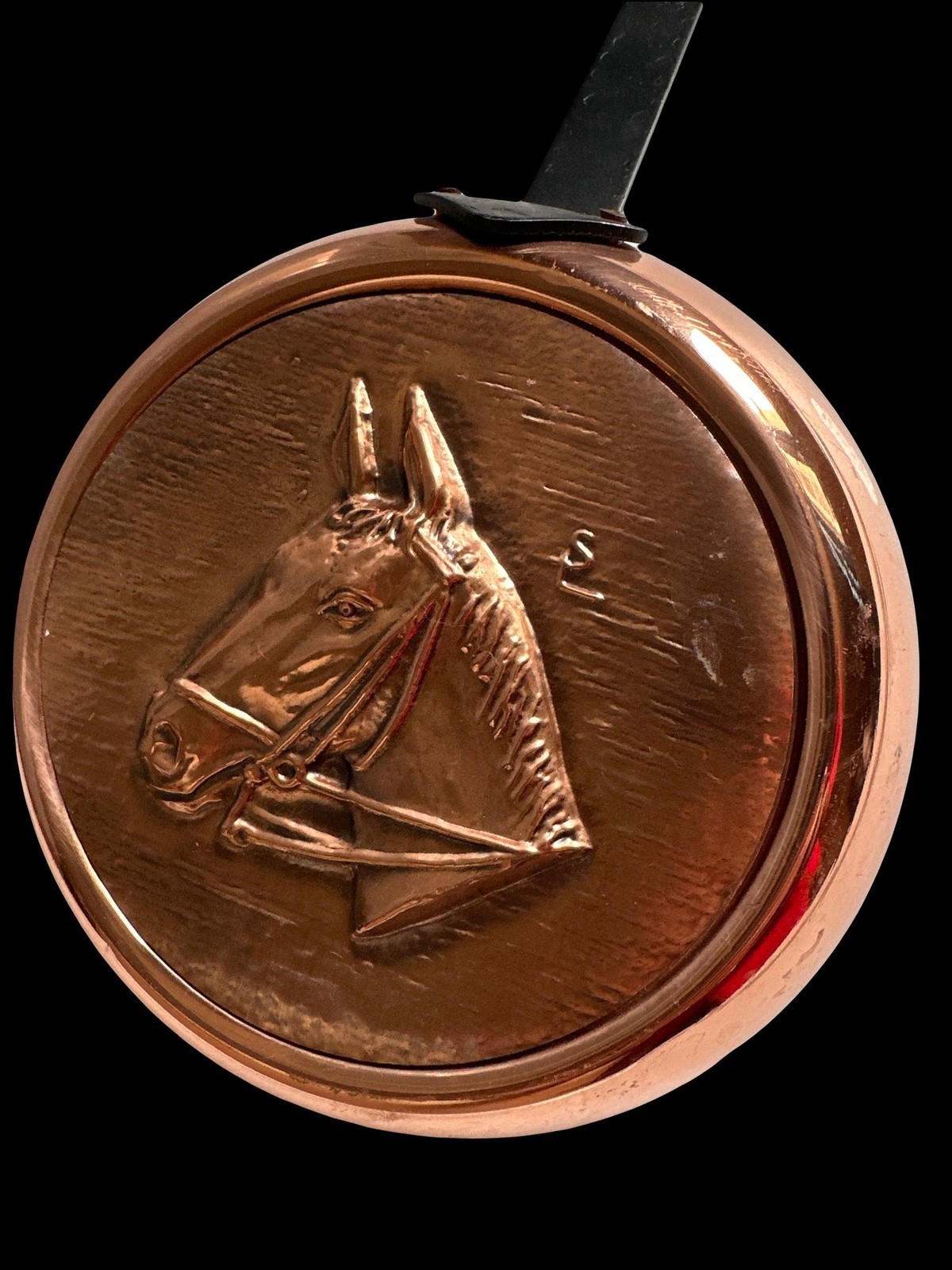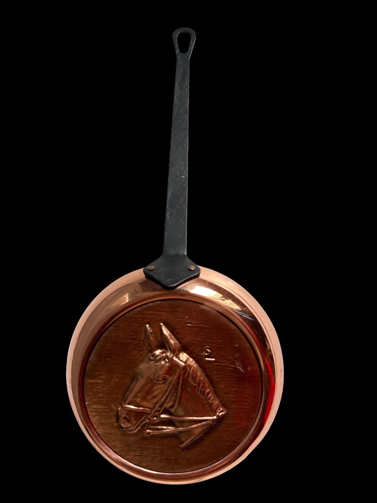 - Vintage French SENECAL small pure copper pan with a horse equestrian rustic