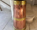 - Vintage French copper and brass barrel umbrella stand, authentic farmhouse