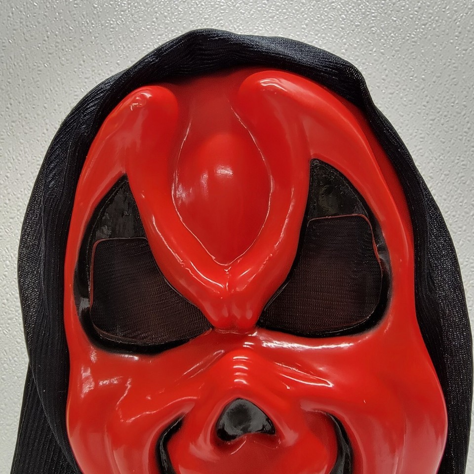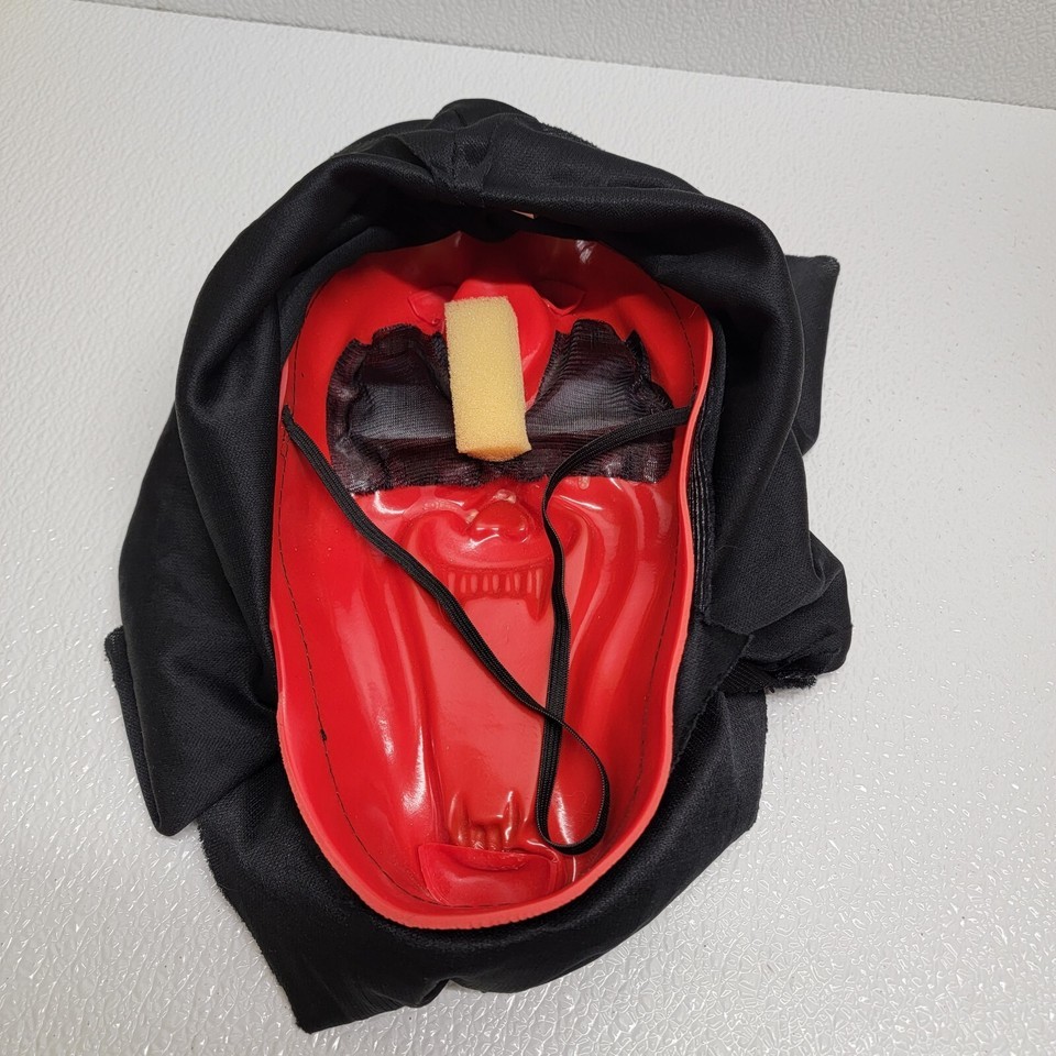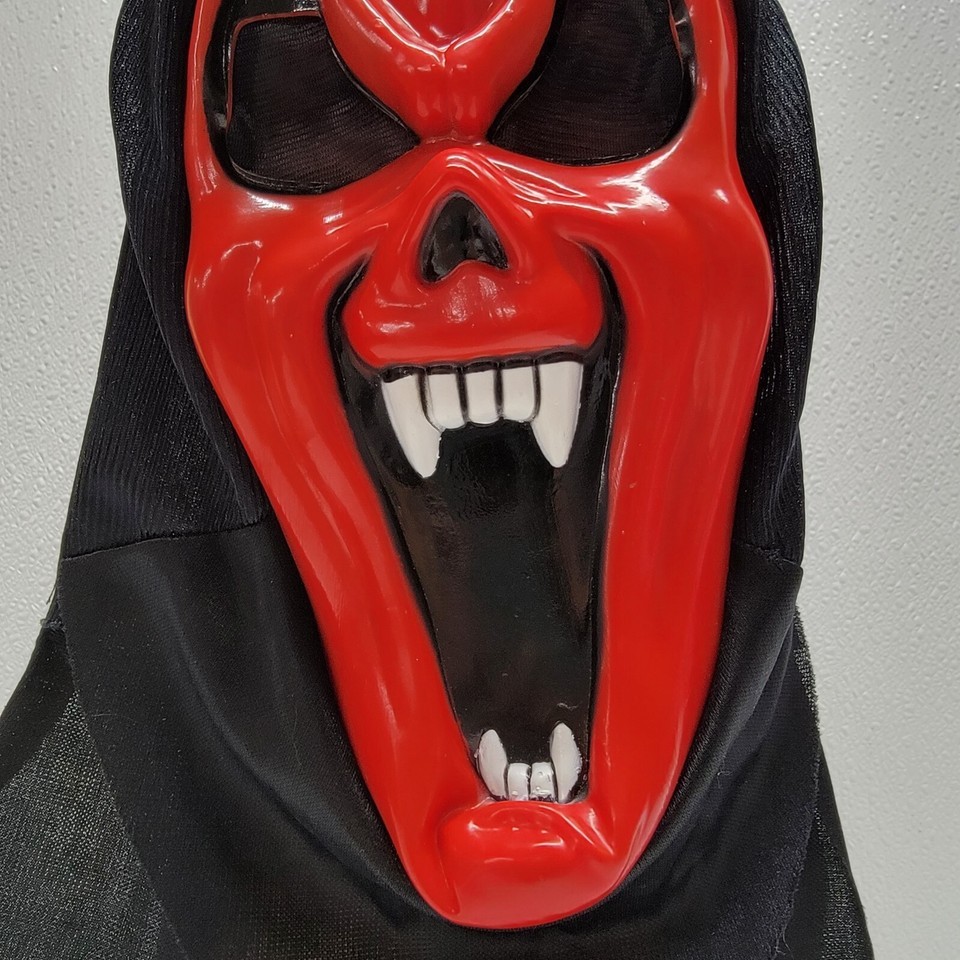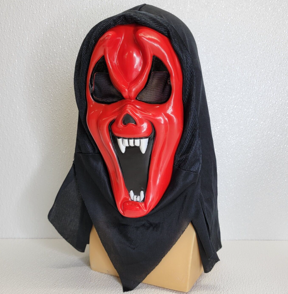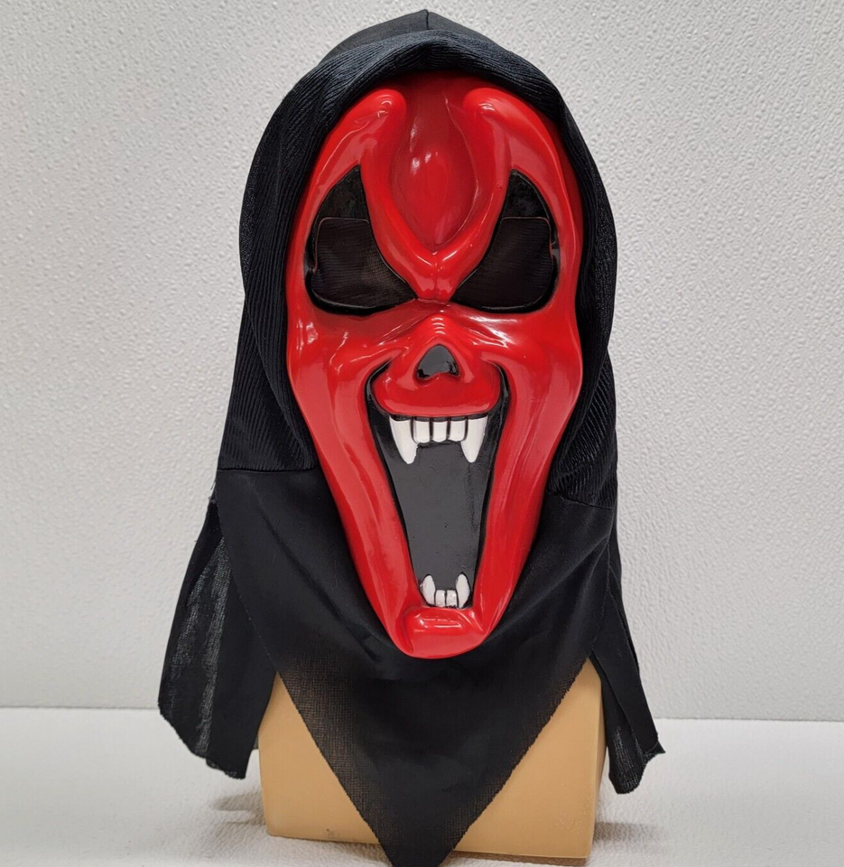 - Vintage Funworld Ghost Devil Vampire Mask Red Evil Face Hooded Adult Halloween