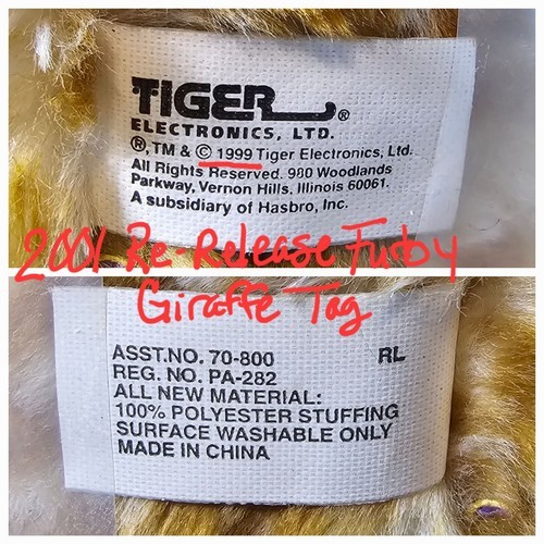 Its color scheme is similar to that of the Lizard Furby. Some uneducated sellers sell Lizard Furbys as Giraffe Furbys instead.