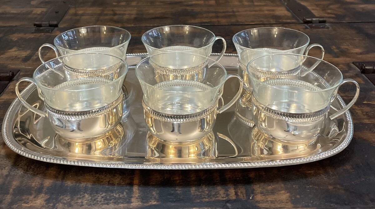 - Vintage German Set, BMF Silver Plated Tray, With 6 Silver Plated Cups