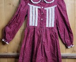 - Vintage Girls Dress 6X Rust Red Floral Prairie Peasant Long Sleeve Lace Miss Qua