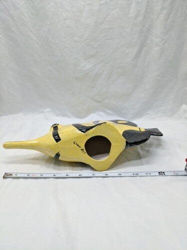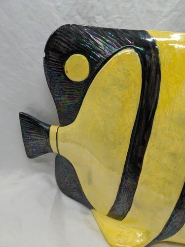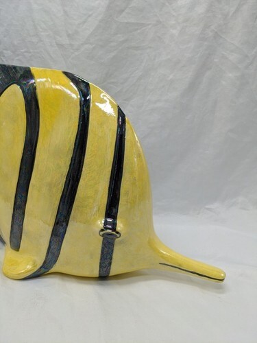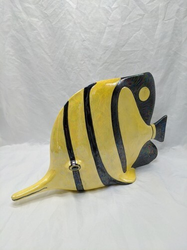 - Vintage Glossy Ceramic Yellow Black Fish Decor 13" X 4" X 8"
