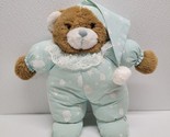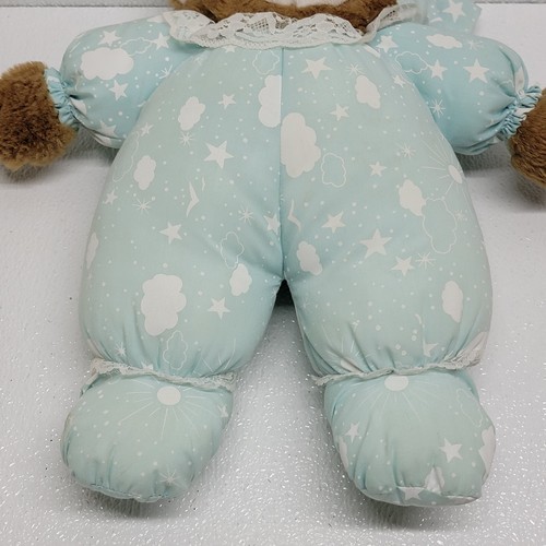 - Vintage Glow In The Dark Teddy Bear Plush Blue Nose Bedtime Pajamas Stars Clouds