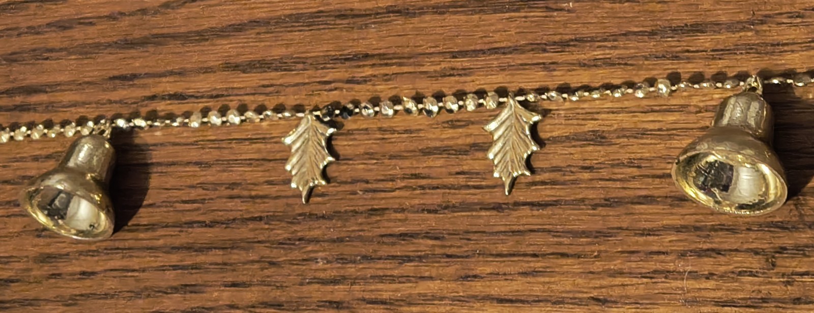 - Vintage Gold Bells And Holly Plastic Garland Strand 12 Ft Long