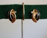 - Vintage Gold Tone Black Earrings Pierced Swirl Modern Elegant Rhinestone