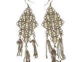 - Vintage Gold Tone Chandelier Earrings Faux Pearls Filigree Dangle Statement Boho