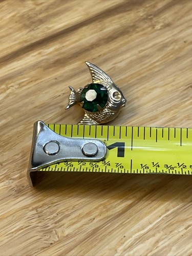 - Vintage Gold Tone Green Stone Fish Lapel Tie Tac Pin Ocean Beach Jewelry KG JD