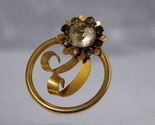 - Vintage Gold Tone Rhinestone Brooch – Mid-Century Circle Flower Pin