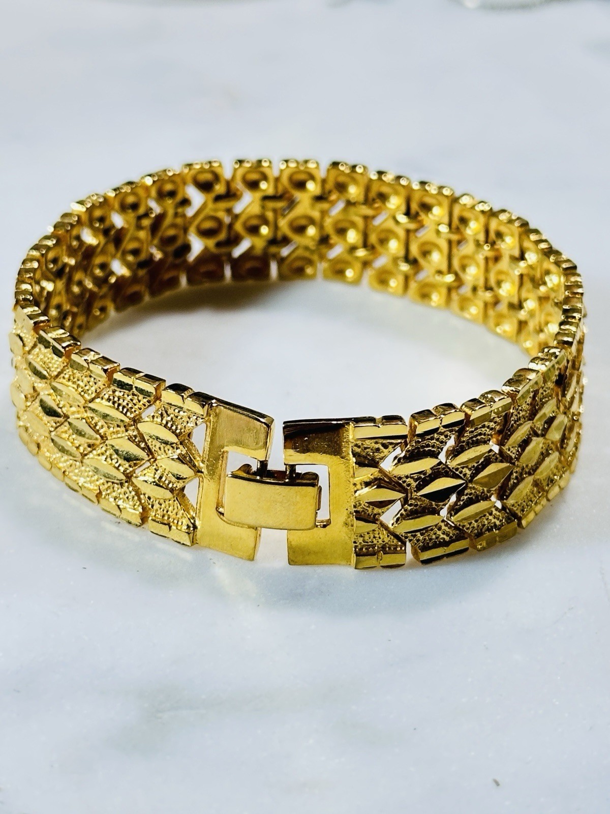 - Vintage Gold Tone Wide Unisex Bracelet 8”