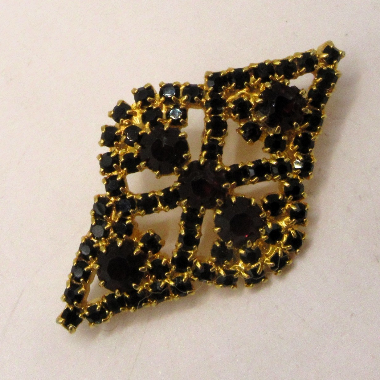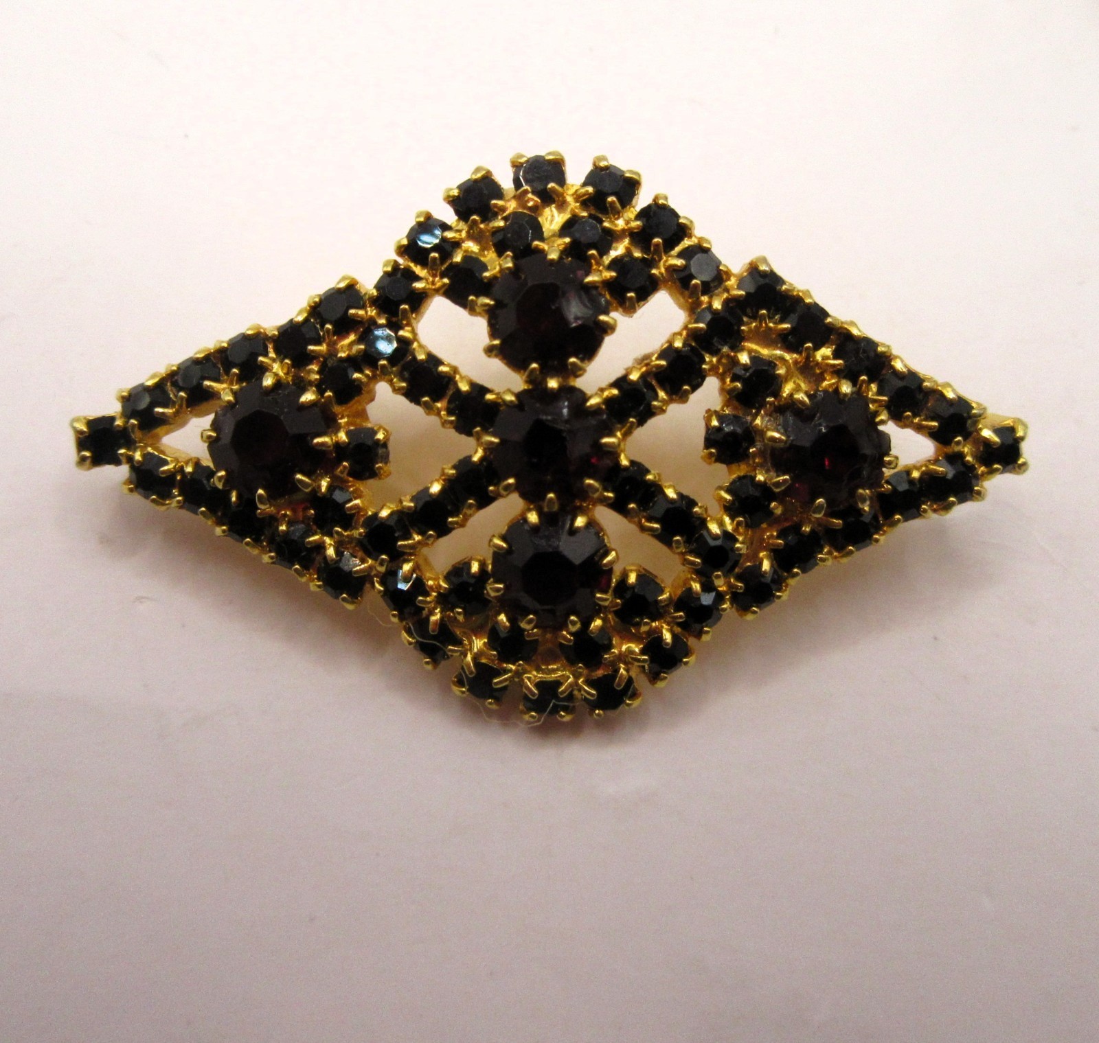 2.Gold-tone brooch with black rhinestones, possibly Juliana (DeLizza Elster) ?Missing back pin