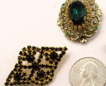 Both are in used condition. The green emerald has some slight scratches and the black Coro brooch is missing the back pin. Please examine the photos to confirm item details and to assess the conditions yourself. Feel free to message me if you have any questions or comments. Also be sure and check out the other items I have for sale and contact me if you want to combine orders. Price listed is total for both. Thank You.