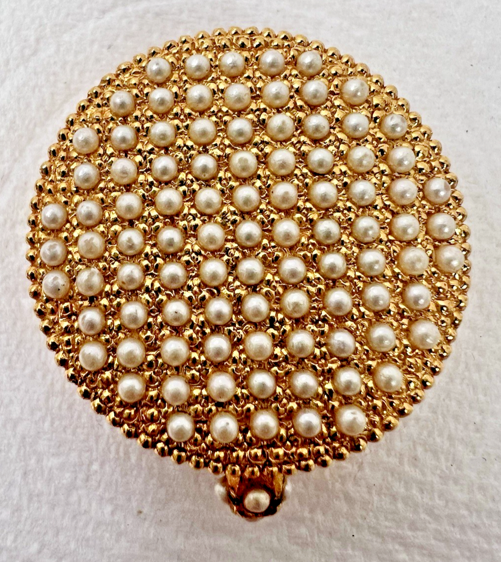 - Vintage Gold with Pearls Max Factor Solid Perfume Golden Woods 1 1/2 inch