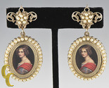 Wunderschoner goldener Ton Vintage "Foto Brosche" Ohrringe